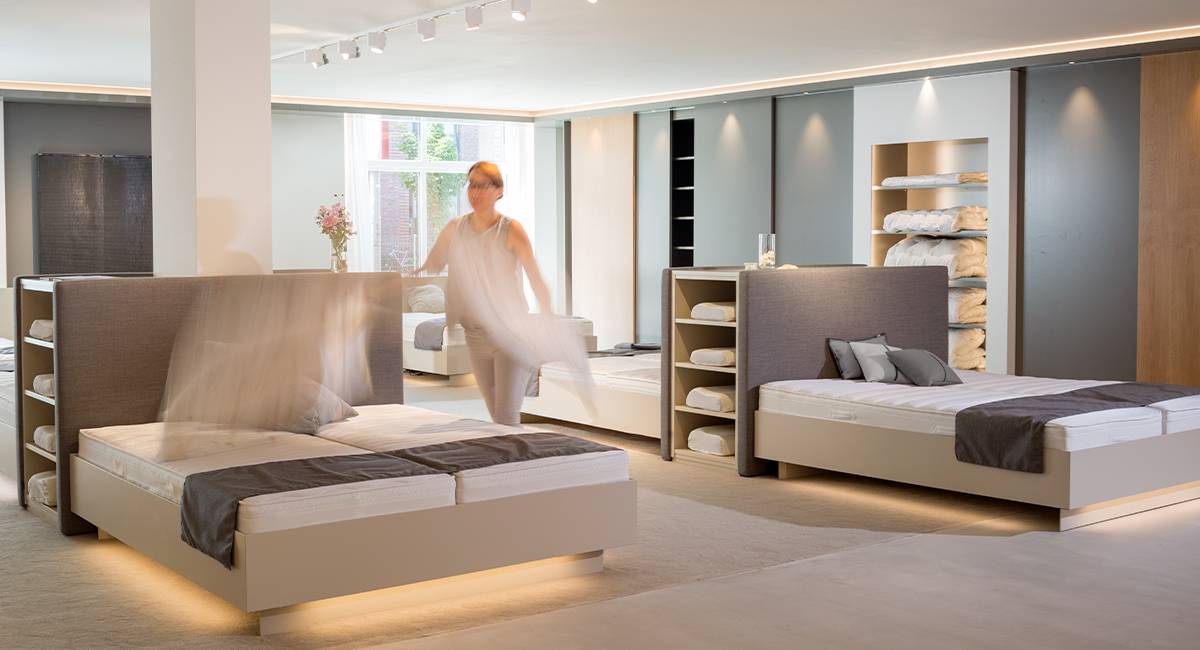 Wir beraten unsere Kundinnen und Kunden ausführlich und kostenlos und entwickeln mit InnenarchitektInnen, SchlafberaterInnen und PhysiotherapeutInnen stilsichere Einrichtungskonzepte sowie die perfekte Schlafumgebung für erholsame Träume.